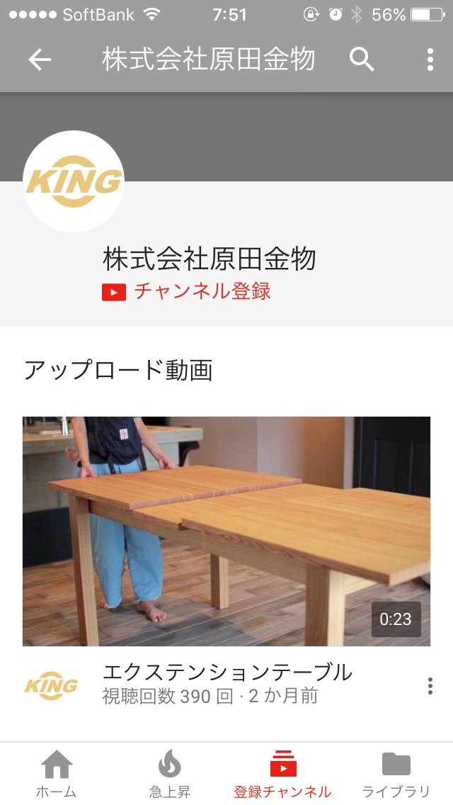 おかげさまで原田金物ユーチューブページ視聴390回再生。笑