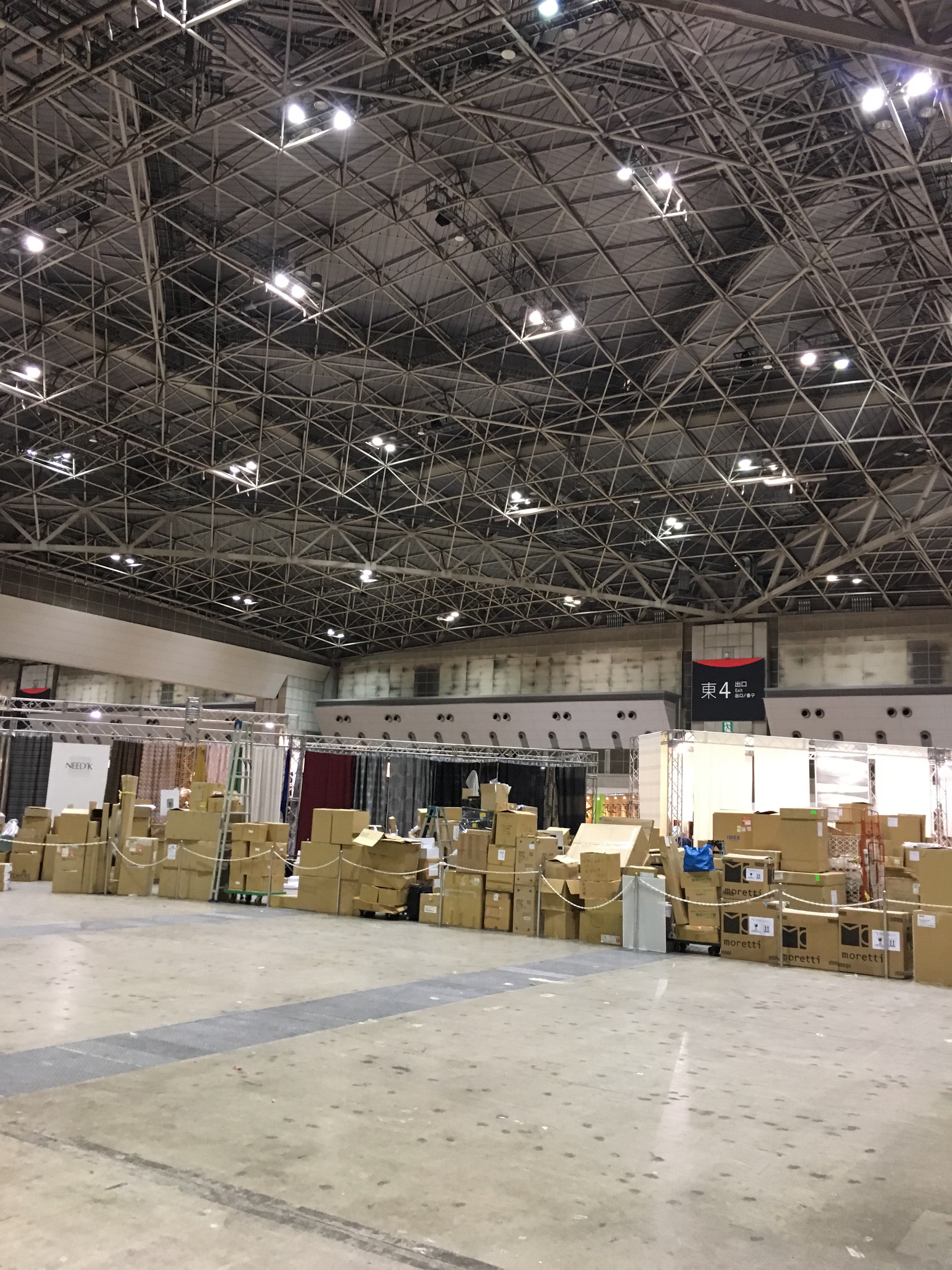 午後の16時半を過ぎても会場内通路のカーペットはまだまだ貼られておらず。。